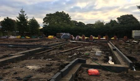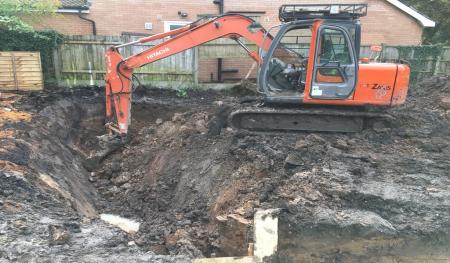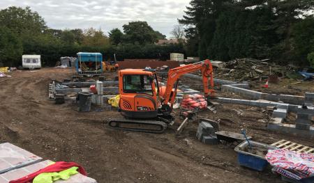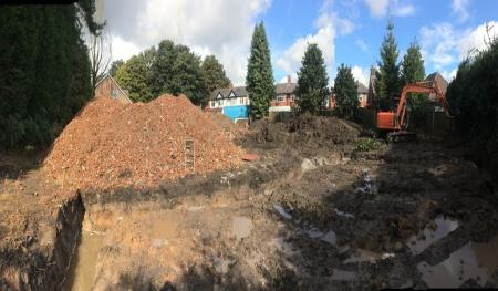 October 2017- One of the wettest October’s in almost 40 years saw the start of the major project. There was a very old five-bedroom detached house in the centre of the site which was flattened to the ground within a couple of hours, all the old bricks were crushed up onsite and later recycled as hardcore and spread under the new driveway.