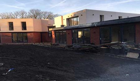October 2017- One of the wettest October’s in almost 40 years saw the start of the major project. There was a very old five-bedroom detached house in the centre of the site which was flattened to the ground within a couple of hours, all the old bricks were crushed up onsite and later recycled as hardcore and spread under the new driveway.