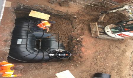 October 2017- One of the wettest October’s in almost 40 years saw the start of the major project. There was a very old five-bedroom detached house in the centre of the site which was flattened to the ground within a couple of hours, all the old bricks were crushed up onsite and later recycled as hardcore and spread under the new driveway.